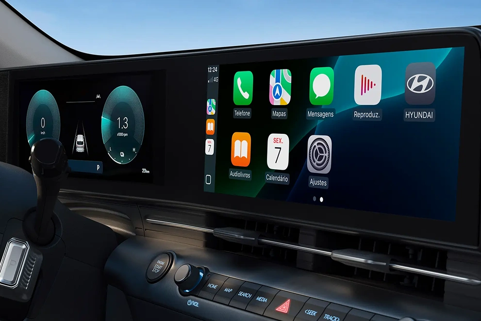 Digital, tecnológico e prático. O KONA Hybrid oferece recursos que tornam sua vida mais simples com poucos toques.